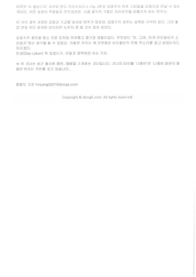 10분 만에 신음했다 "이건 너무 아름답잖아"... 바이올리니스트 김응수 'Das Leben'